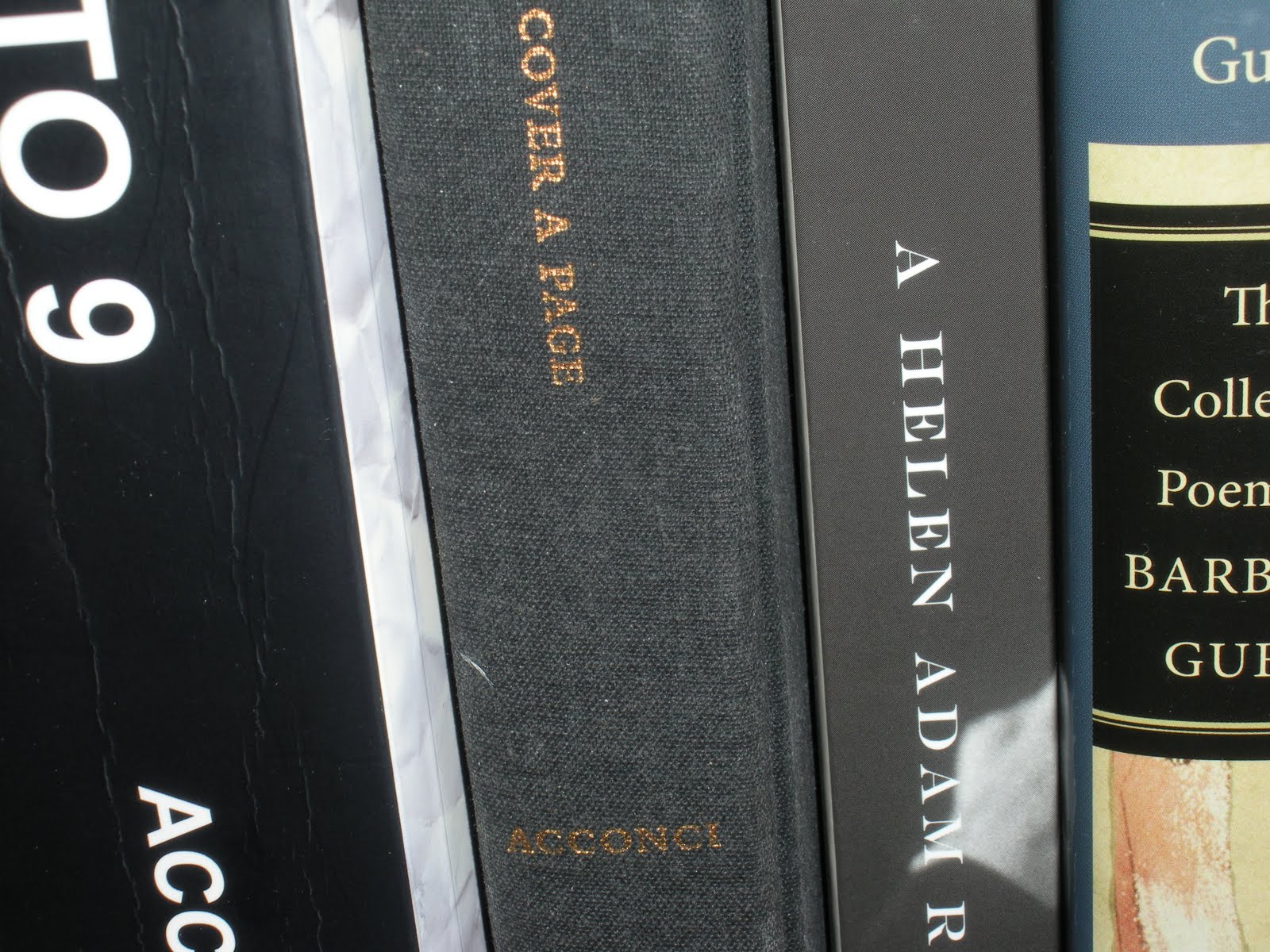 “To 9—————-Acc————–Cover a Page————-Acconci————A Helen Adam R———————Gu——t—-Colle——-Poem———Barb——–Gu”